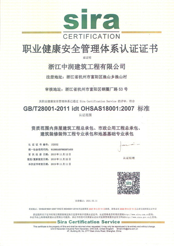 職業(yè)健康安全管理體系認(rèn)證證書(shū)